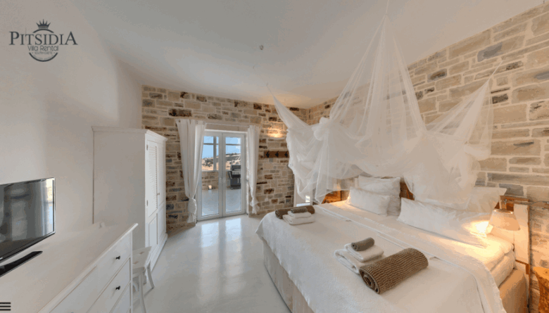 Eingebettet in einen Hang direkt außerhalb von Pitsidia bietet die Villa Inia vier Schlafzimmer mit eigenem Bad für bis zu acht Gäste, einen funkelnden Infinity-Pool mit Kinderbereich und Jacuzzi sowie einen ungestörten Blick auf die Sonnenuntergänge über dem Libyschen Meer und dem Psiloritis (Ida-Gebirge) – eine perfekte Verbindung aus eleganter Naturstein-Architektur und entspannter Familienatmosphäre.