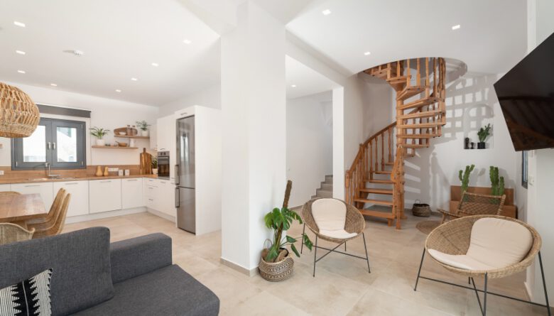 Villa Calma „Boho-Chic“ lädt dazu ein, in entspannter Atmosphäre am ruhigen Rand von Kamilari (nahe Pitsidia) zur Ruhe zu kommen. Die 2020 renovierte Villa bietet auf 180 m² Wohnfläche – insgesamt 370 m² inklusive Terrassen und Außenbereichen – eine gelungene Kombination aus modernem Komfort und lässiger Boho-Eleganz.