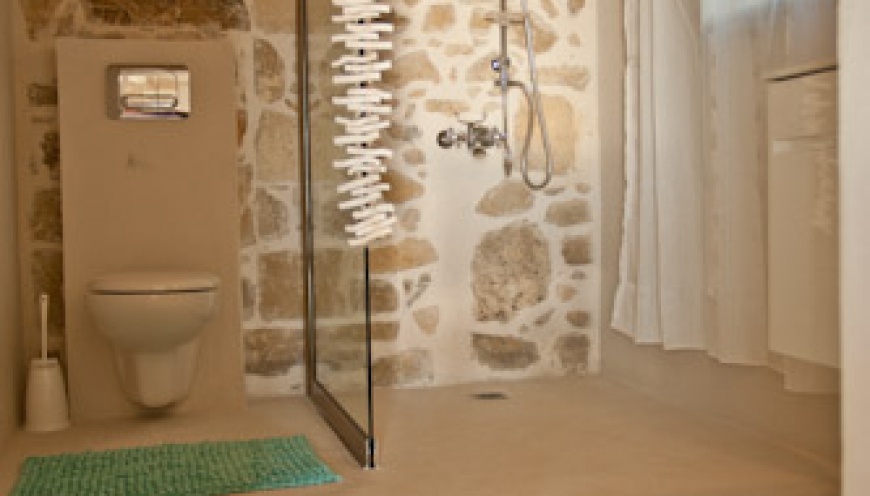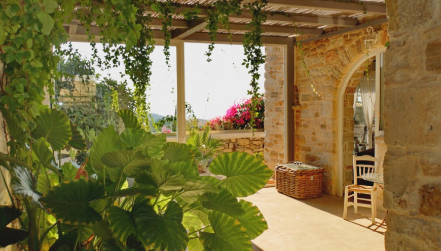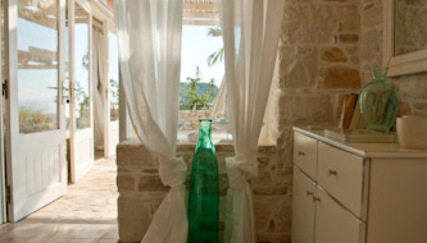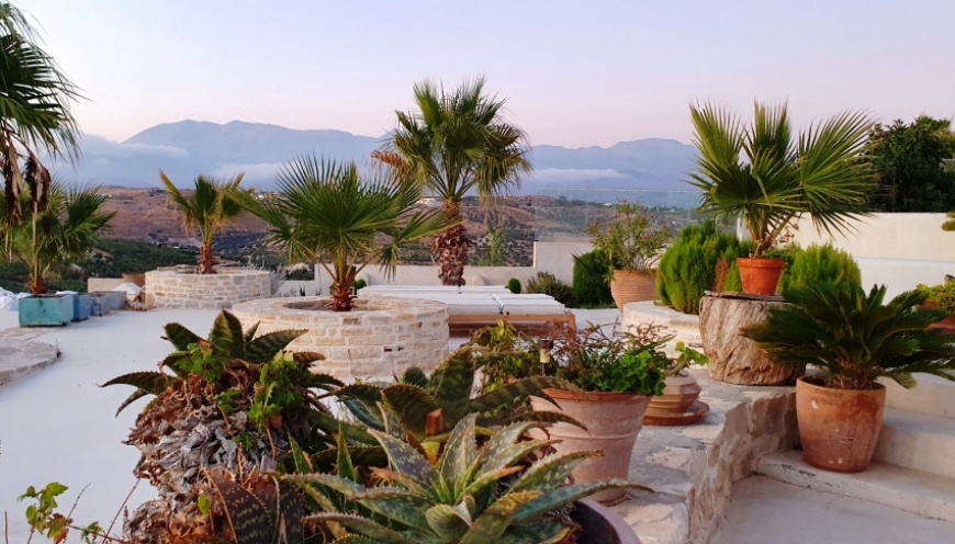 Unique top location, above on a small mountain above the village of Pitsidia – free-standing – fascinating panoramic view – flooded with light – bright, large and high rooms.