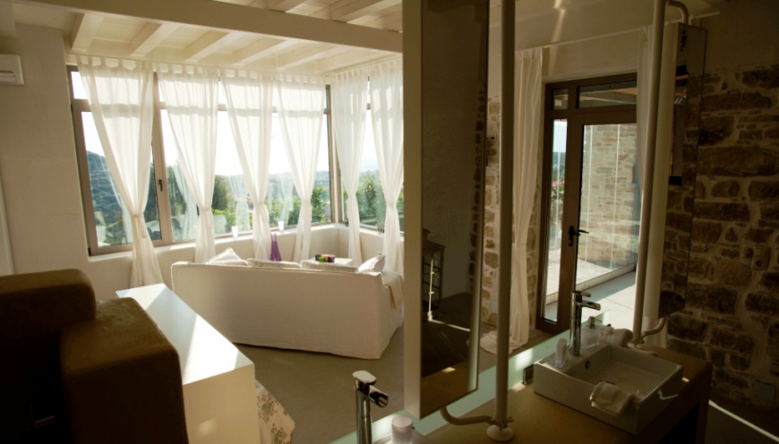 Luxury domicile with a view over the Libyan Sea – Mediterranean Sea, mountain panorama Psiloritis – Ida Mountains and the Messara Plain.