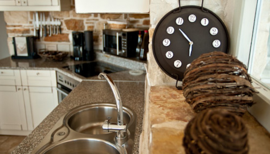 The highlight of Villa Thea is the infinity swimming pool with salt filter system, without chlorine. You can slide from the children’s pool (4 mx 3.50 mx 0.40 m) with whirlpool function into the large swimming pool (5 mx 9 mx 1.50 m). This is equipped with a surge shower for massage applications. You are surrounded by a green garden with palm trees, lavender, fruit trees and olive grove.